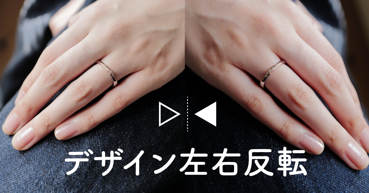 これまで「結婚指輪=左手薬指」という固定観念にとらわれていた方へ、指輪のデザインそのものを左右反転して仕立てる、新しいカスタマイズのご提案です。