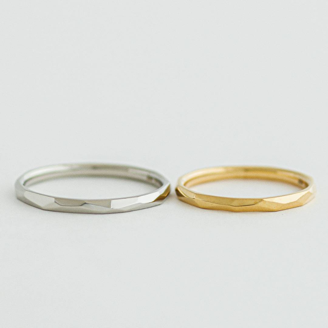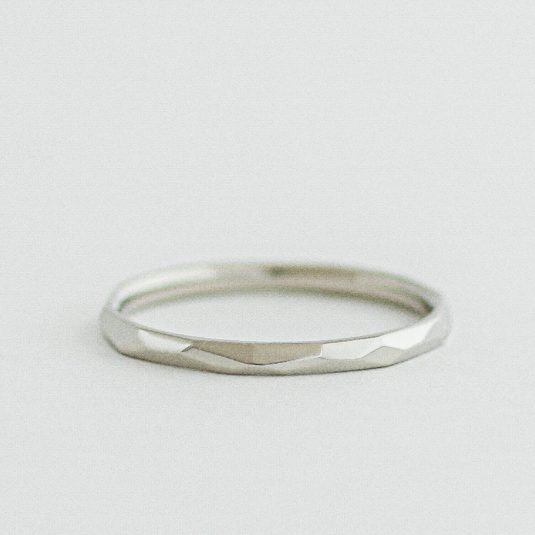 リング全周にカット鎚目を施したカジュアルに身に着けるマリッジリング。