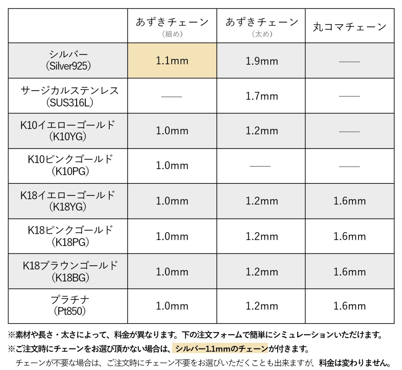 サイズと地金素材は、ご注文時にお伺いさせていただきます。