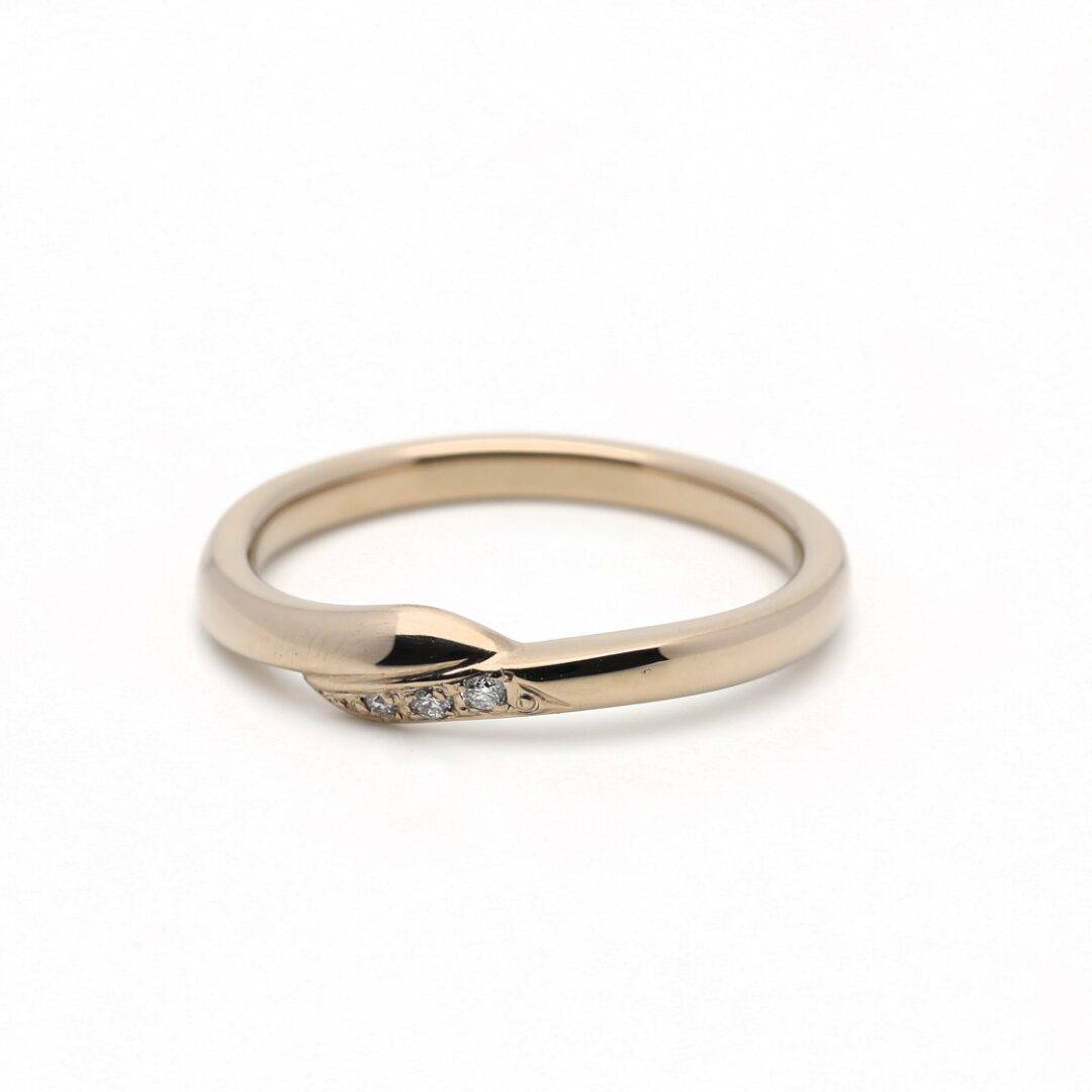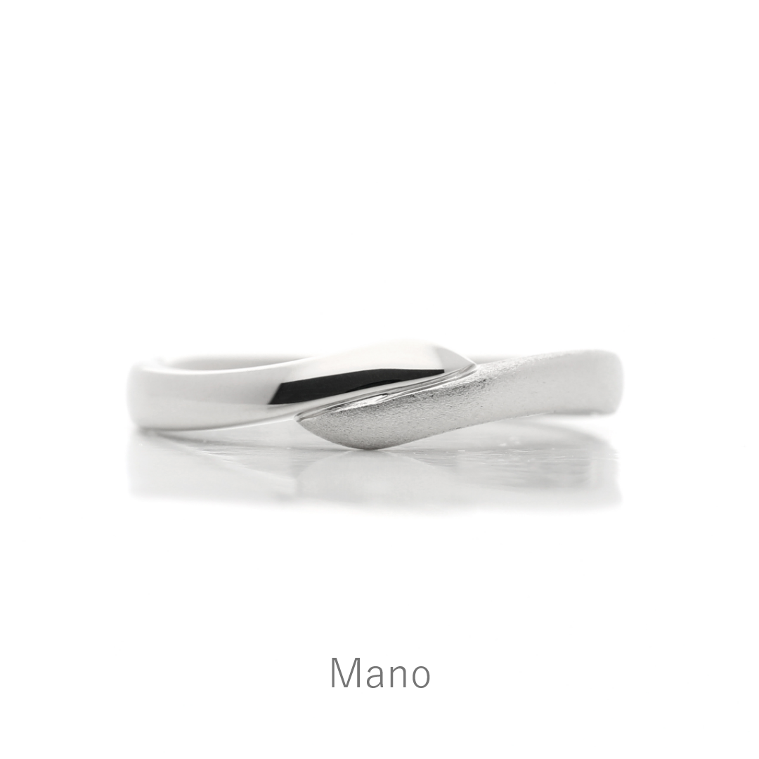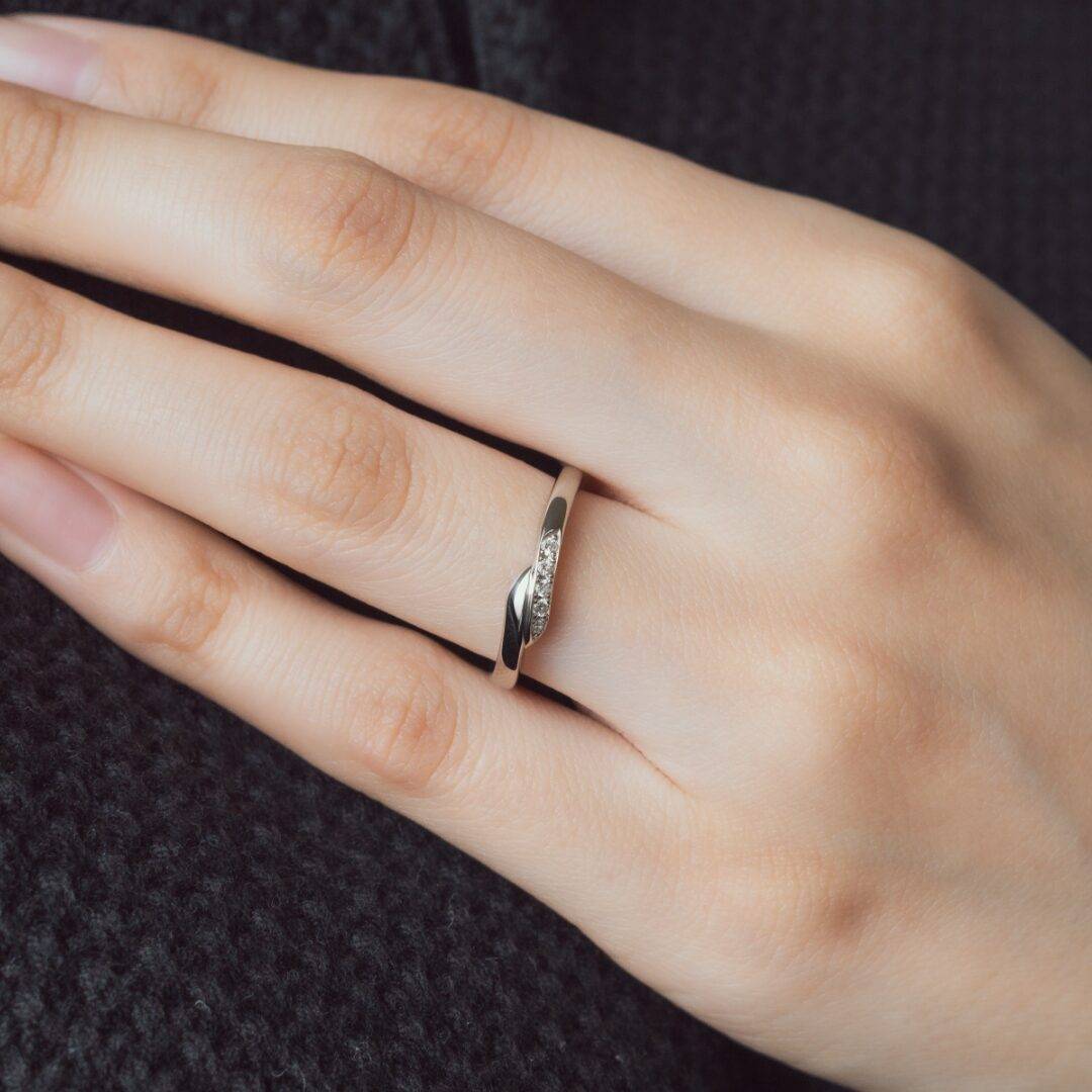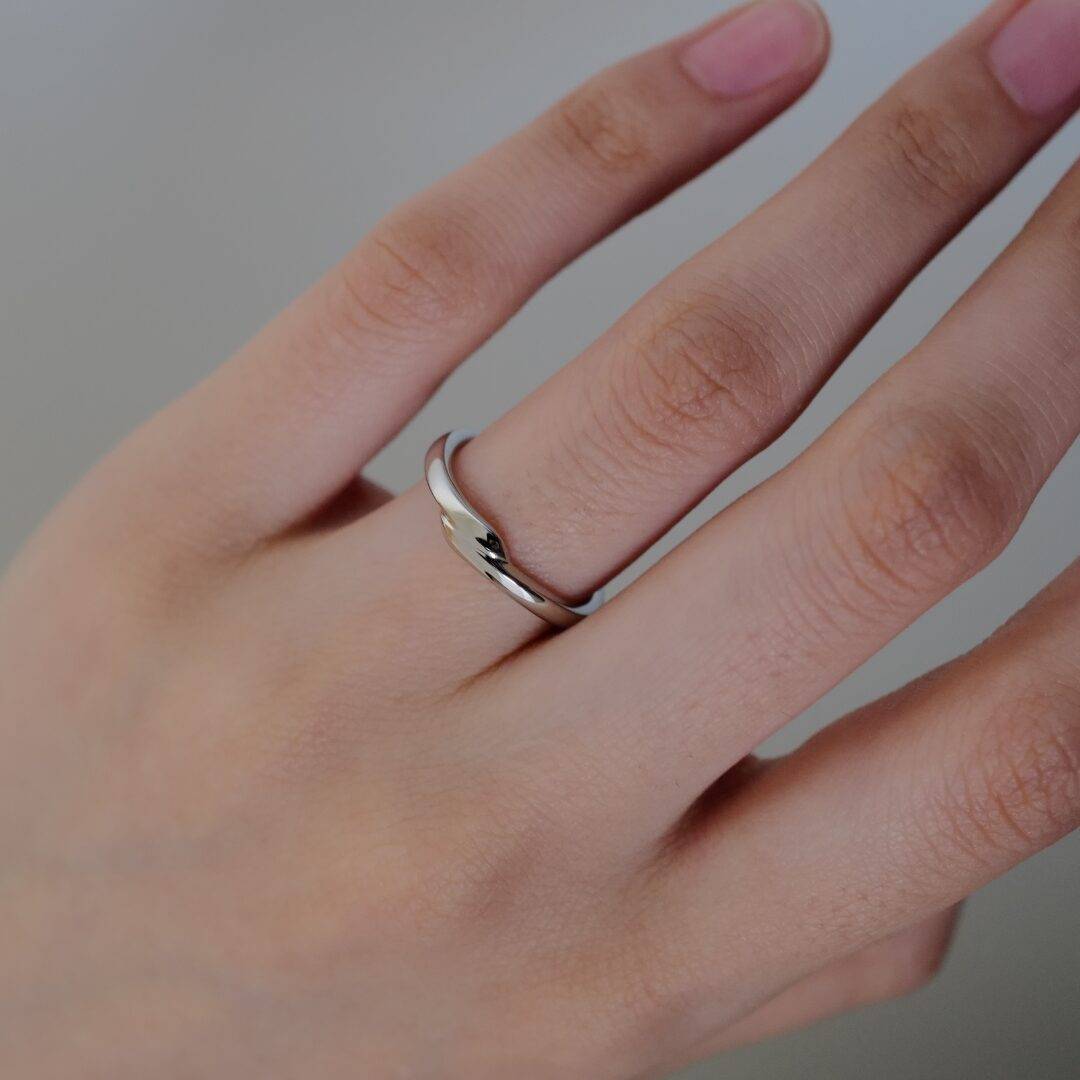 緩やかな曲線が指に馴染み、柔らかな着け心地に。左右で異なる表面加工や宝石などのオプションを追加することで上品にも、カジュアルにも、様々な雰囲気を楽しむことができます。