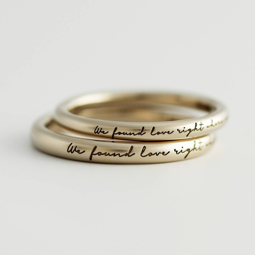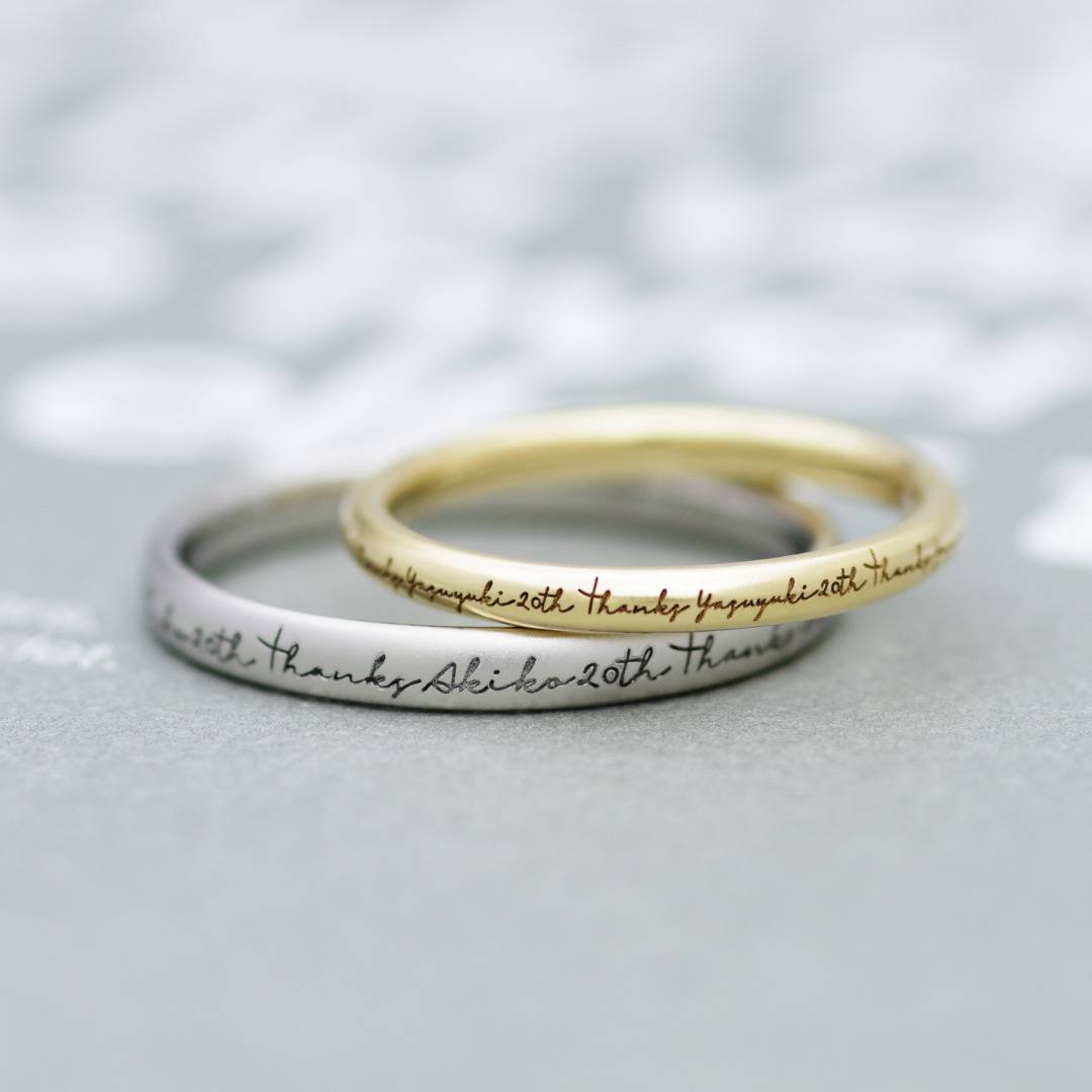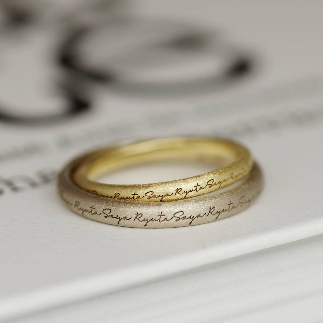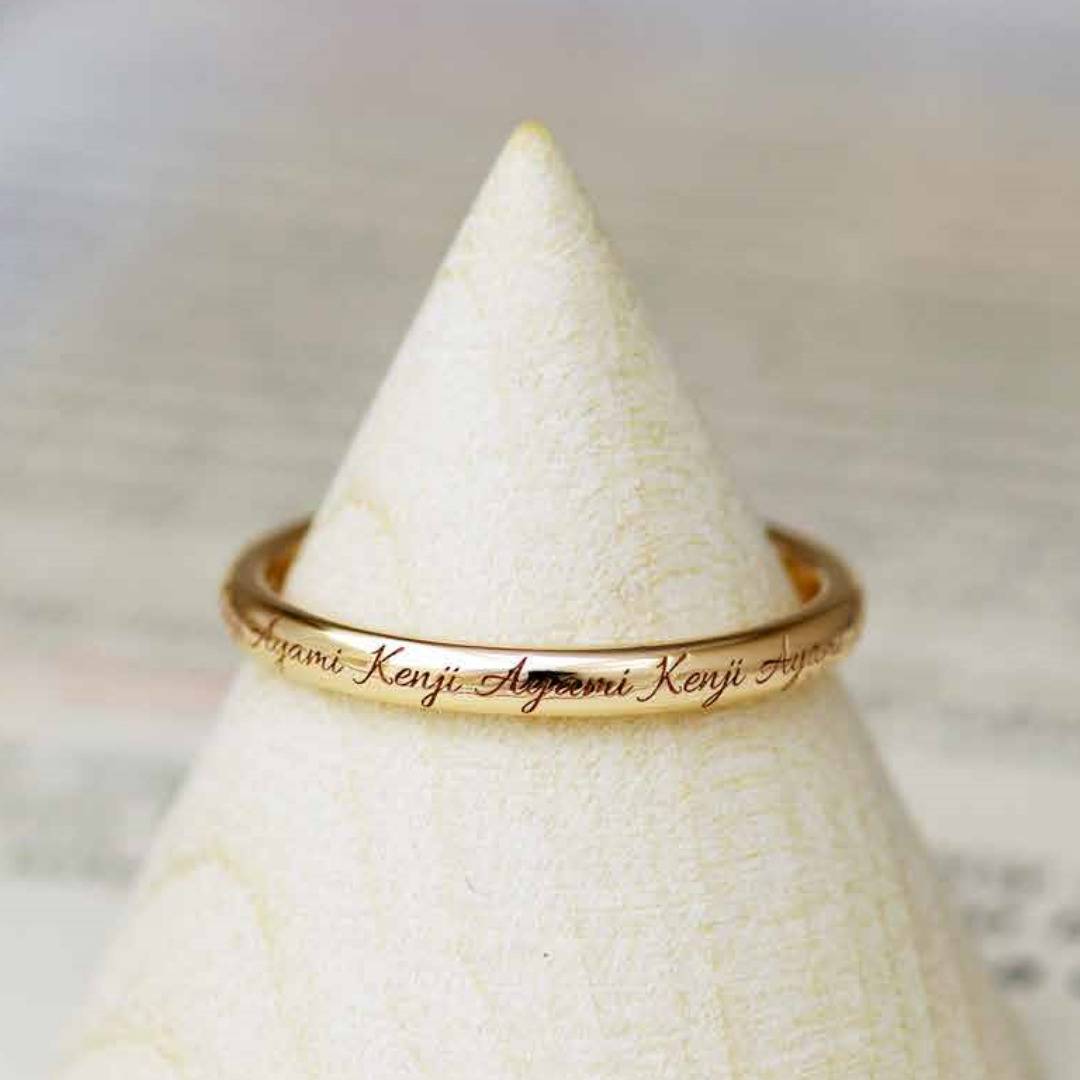 15〜17世紀にイングランドやフランスで親しまれた“ポージーリング”の伝統を受け継ぎ、お名前やメッセージ、ふたりだけの言葉を途切れることなく刻印可能。