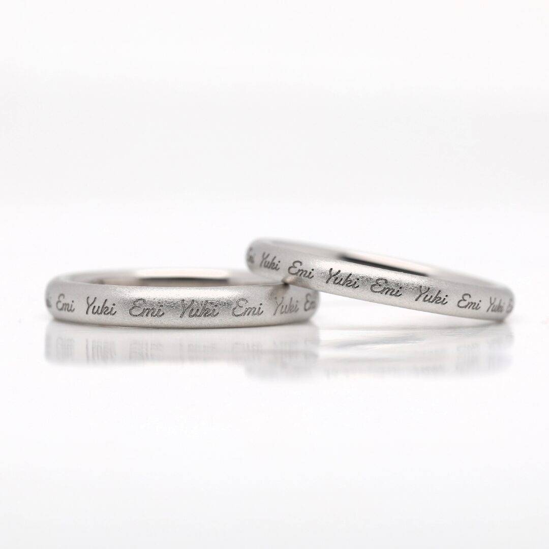 シンプルな甲丸デザインながら、リングに込められた言葉が特別な意味を放ち、永遠の誓いにふさわしいブライダルリングです。