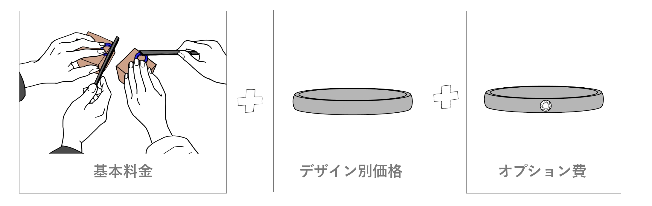 スタンダードコースは、【制作費(¥11,000)】+【リング価格】+【オプション費】の3項目の合計=価格となります。